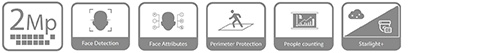 > Intelligent detection: Tripwire, intrusion, fast moving (the three functions support the classification and accurate detection of vehicle and human), abandoned object, missing object, loitering detection, people gathering, parking detection, heat map, face detection, face attributes and people counting