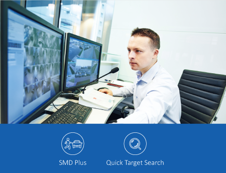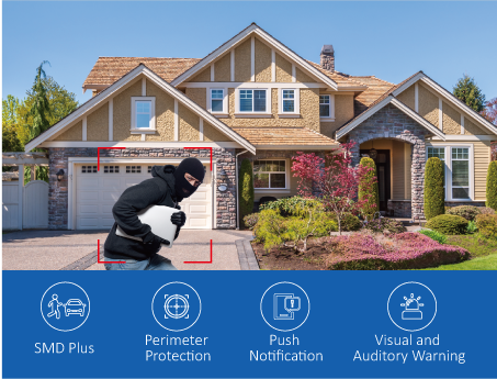 SMD Plus (Smart Motion Detection Plus) analyse les formes des individus et des véhicules en fonction de la détection de mouvement et envoie uniquement des alertes lorsqu'une intrusion de personne ou de véhicule a été détectée.