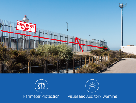La protection du périmètre basée sur Tripwire et une zone envoie une alerte lorsque des mouvements non voulus déclenchés par un individu ou un véhicule ont été repérés, évitant ainsi de fausses alertes non nécessaires.