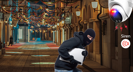 When an intrusion happened in the monitored scene, the SMD Plus feature can accurately identify real targets, and the TiOC camera warns off the intruder with red & blue light and siren (110dB). The full-color image provides more useful human/vehicle evidence for future analysis.