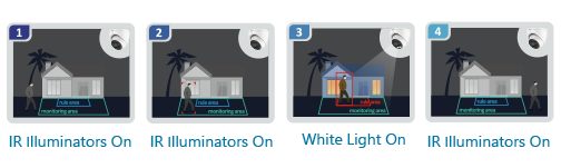 At night, some application scenarios cannot visibly recognize people and vehicles due to lack of sufficient light, such as courtyards, parks, etc. White light is used to capture target’s details in these scenarios. However, constant usage of supplementary white light can contribute to the light pollution in the monitored area.