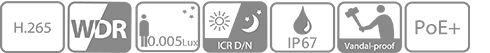 | Backlight Compensation | BLC / HLC / WDR (120dB) | ||||||||||||||||||||||||||||||||||||||||||||||||||||||||||